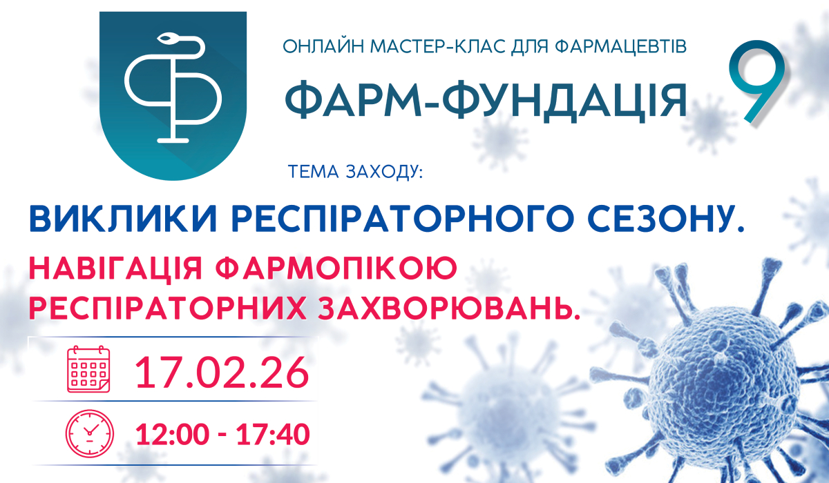 У вівторок, 17 лютого, відбудеться онлайн майстер-клас для фармацевтів ФАРМ-ФУНДАЦІЯ № 9, присвячений темі "Виклики респіраторного сезону. Навігація фармопікою респіраторних захворювань".